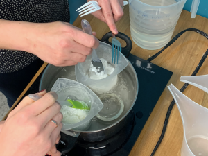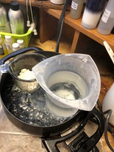 And set some water in a separate container to heat. A pot with water on the stove or boiling up the kettle works well. You don’t need to boil it the whole time – bring it to boiling now and you’ll have some less-than-boiling water for step 3a. You can start with warmed water to 50˚C (122˚F) to get things started.
